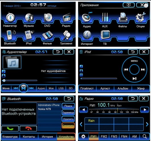 Кроме прочего, с помощью этого головного устройства вы сможете выходить в интернет и пользоваться функцией отображения пробок на дороге. Благодаря этой функции навигатор в вашей магнитоле будет прокладывать дорогу с учетом пробок, т.е. выбирать для вас самый быстрый и оптимальный путь. Чтобы появились доступ в Интернет и функция отображения кнопок, нужен модем Intro GPS 3G. Модем не входит в стандартную комплектацию и приобретается отдельно.