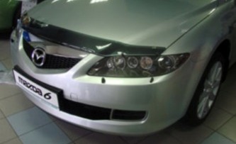 Дефлектор капота для Mazda 6 и Atenza — это щиток из орг.стекла темного цвета, который крепится на переднюю часть капота. Благодаря тому, что дефлектор разработан специально для Mazda 6 и Atenza  2003-2007 гг.в., устанавливается он легко и быстро, при этом сверлить кузов вам не нужно. По форме же накладка полностью повторяет контуры капота. Данная модель прочна и долговечна: она надежно крепится, не боится коррозии, экстремальных температур и серьезных перегрузок.
