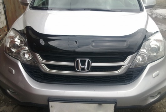 Дефлектор капота для Honda CR-V — это щиток из орг.стекла темного цвета, который крепится на переднюю часть капота. Благодаря тому, что дефлектор разработан специально для Honda CR-V 2007-2009 г.в., устанавливается он легко и быстро, при этом сверлить кузов вам не нужно. По форме же накладка полностью повторяет контуры капота. Данная модель прочна и долговечна: она надежно крепится, не боится коррозии, экстремальных температур и серьезных перегрузок.