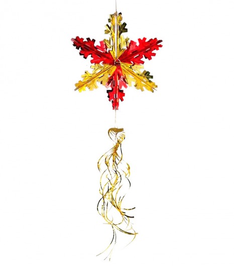 Звезда из фольги красно-золотая с подвеской (30 см, 24 шт.)