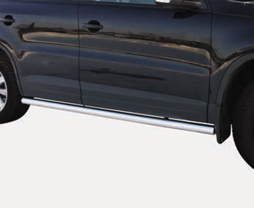 Боковые пороги-подножки сделаны специально для автомобилей Volkswagen Tiguan Track&Field и Tiguan Track&Style от 2011 г.в., поэтому устанавливаются достаточно просто и без повреждений корпуса. Помимо этого, стальные пороги-трубы для Фольксваген Тигуан смотрятся очень стильно и эффектно. Они добавят вашему авто еще больше солидности и внушительности.