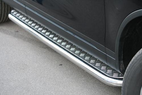 Боковые пороги-подножки сделаны специально для автомобилей Volkswagen Touareg от 2010 г.в., поэтому устанавливаются достаточно просто и без повреждений корпуса. Помимо этого, стальные пороги с листом для Фольксваген Туарег смотрятся очень стильно и эффектно. Они добавят вашему авто еще больше солидности и внушительности.