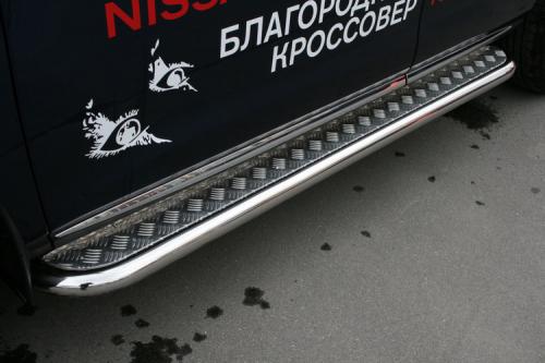 Боковые пороги-подножки сделаны специально для автомобилей Nissan Murano 2008-2009 г.в., поэтому устанавливаются достаточно просто и без повреждений корпуса. Помимо этого, стальные пороги с листом для Ниссан Мурано смотрятся очень стильно и эффектно. Они добавят вашему авто еще больше солидности и внушительности.