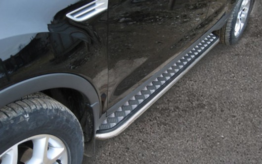 Боковые пороги-подножки сделаны специально для автомобилей Ford Kuga от 2008 г.в., поэтому устанавливаются достаточно просто и без повреждений корпуса. Помимо этого, стальные пороги с листом для Форд Куга смотрятся очень стильно и эффектно. Они добавят вашему авто еще больше солидности и внушительности.