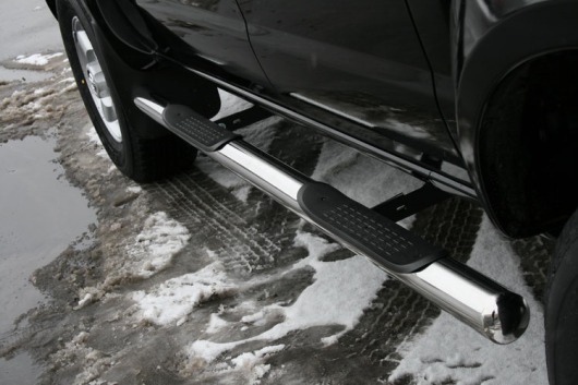 Пороги на Nissan NP300 – это боковые подножки из нержавеющей стали диаметром 76 мм, которые позволяют более комфортно входить и выходить из салона автомобиля. Подножки Nissan NP300 очень прочные, надежные и долговечные: они не боятся коррозии, сколов и царапин и выдерживают большие нагрузки.