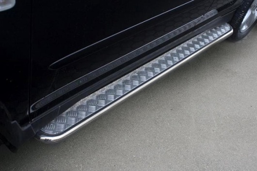 Боковые пороги-подножки сделаны специально для автомобилей Lexus RX400, поэтому устанавливаются достаточно просто и без повреждений корпуса. Помимо этого, стальные пороги с листом для Лексус RX400 смотрятся очень стильно и эффектно. Они добавят вашему авто еще больше солидности и внушительности.