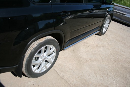 Пороги на Nissan X-Trail – это боковые подножки из нержавеющей стали диаметром 76 мм, которые позволяют более комфортно входить и выходить из салона автомобиля. Подножки Nissan X-Trail очень прочные, надежные и долговечные: они не боятся коррозии, сколов и царапин и выдерживают большие нагрузки.