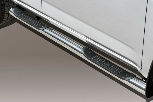 Пороги на Toyota RAV4 SWB – это боковые подножки из нержавеющей стали диаметром 76 мм, которые позволяют более комфортно входить и выходить из салона автомобиля. Подножки Toyota RAV4 SWB очень прочные, надежные и долговечные: они не боятся коррозии, сколов и царапин и выдерживают большие нагрузки.