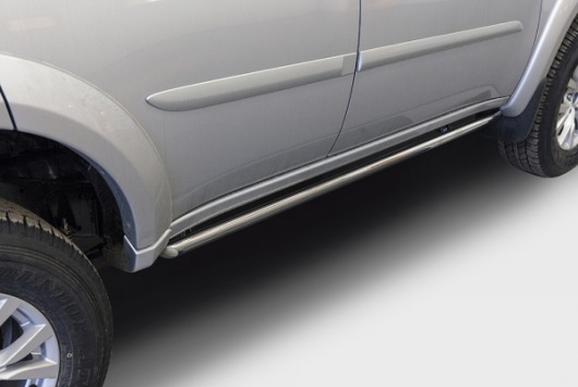 Пороги на Mitsubishi Pajero Sport – это боковые подножки в виде овальной трубы из нержавеющей стали диаметром 75х42 мм, которые позволяют более комфортно входить и выходить из салона автомобиля. Подножки Mitsubishi Pajero Sport очень прочные, надежные и долговечные: они не боятся коррозии, сколов и царапин и выдерживают большие нагрузки.