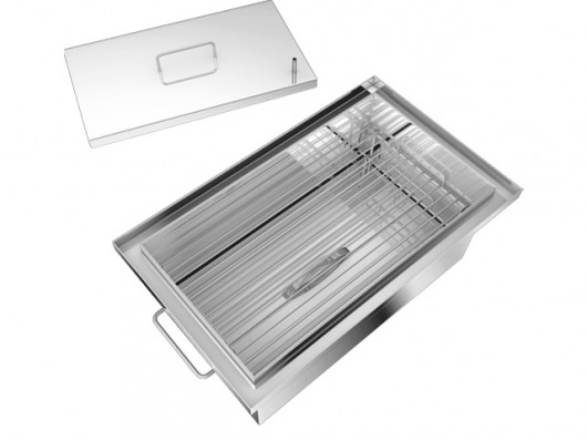 Все элементы коптильни изготовлены из высококачественной пищевой нержавеющей стали (толщина стенок — 1,5 мм). Такая коптильня из нержавейки не боится коррозии и прослужит вам более 10 лет — и это при том, что вы будете часто ее использовать. Кроме того, такую коптильню легко чистить и мыть после использования.
