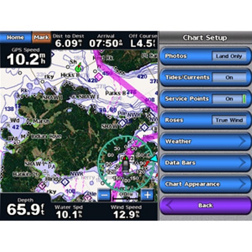 Морской GPS навигатор GARMIN GPSMAP 5008 (BlueChart) оснащен картой мира с высококачественными изображениями. Для того, чтобы получить информацию о большем количестве объектов, вам всего лишь нужно загрузить дополнительные карты при помощи SD-карты. А при подключении специальной камеры, у вас появится возможность наблюдать не только за тем, что происходит вокруг судна, но и за всем происходящим на судне.