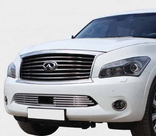 Тюнинг. Накладка на воздухозаборник Инфинити КХ56, несмотря на небольшой размер, сделает «лицо» вашего автомобиля еще более стильным и привлекательным.