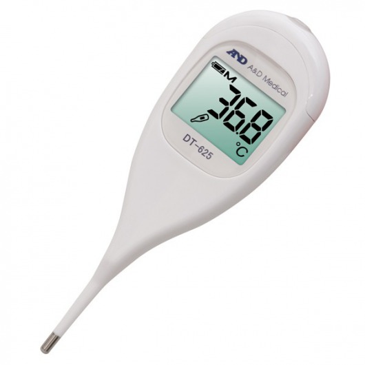 Электротермометр AND DT-625 предназначен для измерения температуры тела в подмышечной впадине. Градусник имеет 2 режима: точный и быстрый (основан на прогнозе, время измерения 30 сек.) и сверхточный (измеряет температуру в реальном времени в течение 10 мин.). Цифровой термометр AND DT-625 абсолютно безопасен, так как не содержит стекла и ртути.