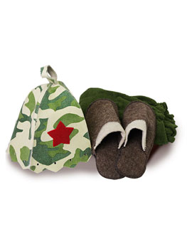 Тапочки из натуральной ткани — отличное дополнение к банному комплекту. В тапочках вам не будет горячо ходить по полу в парной, кроме того, вы можете быть уверены, что не поскользнетесь на влажном полу. Набор для бани "Армейский" сделает ваше пребывание в парной максимально комфортным и безопасным.