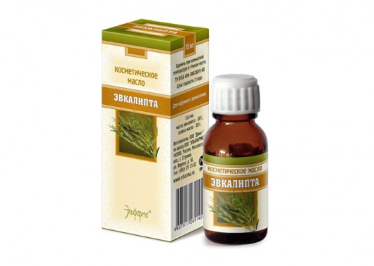 Натуральное косметическое масло «Эльфарма» на 50% состоит из эфирного масла эвкалипта и на 50% из соевого масла. В отличие от чистого эфирного масла, которое нужно смешивать с базовым, такое косметическое масло сразу же можно использовать в чистом виде. Объем флакона: 15 мл.