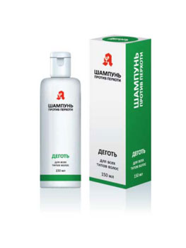 Шампунь против перхоти "Деготь" — это специальная формула с  дегтем которая действенна против различных видов перхоти. Деготь в составе шампуня не только эффективно устраняет перхоть различного происхождения, но и снижает жирность волос, устраняет зуд и шелушение кожы головы и улучшает структуру поврежденных волос, не оставляя при этом запаха дегтя на волосах.