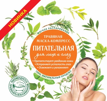 Растительная маска-компресс для лица и глаз полностью покрывает лицо. Для дыхания предусмотрена специальная прорезь. Состав: для лица - ромашка, мята, календула; для глаз - мята. Отборные травы высшего качества, экологически чистый и натуральный продукт.
