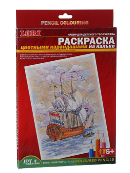 Раскраска "Фрегат Меркурий" (бумажная основа + карандаши цветные - 12 цветов, деревянная рамка, калька - 2 шт.)