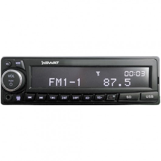 Автомобильная магнитола 1din Swat MEX-3007UBW – недорогое, но функциональное утройство. У MEX-3007UBW есть широкий набор мультимедийных возможностей, которые позволяют выжать из устройства по максимуму. Ресивер способен выдавать звук на 4 колонки по 50 ватт. Есть возможность сохранения до 18 радиостанций на цифровом радио-тюнере. Кроме того, реализована возможность прослушивания аудиозаписей через карту памяти.