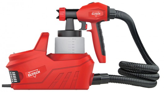 Электрический краскопульт Elitech или безвоздушный краскораспылитель набирает необходимое для работы давление за счет встроенного мотора или плунжерного насоса. Такие покрасочные пистолеты компактны и удобны в работе, но с их помощью не удастся добиться такого ровного покрытия как в пневматических, электрические краскопульты обычно применяются в бытовых целях.